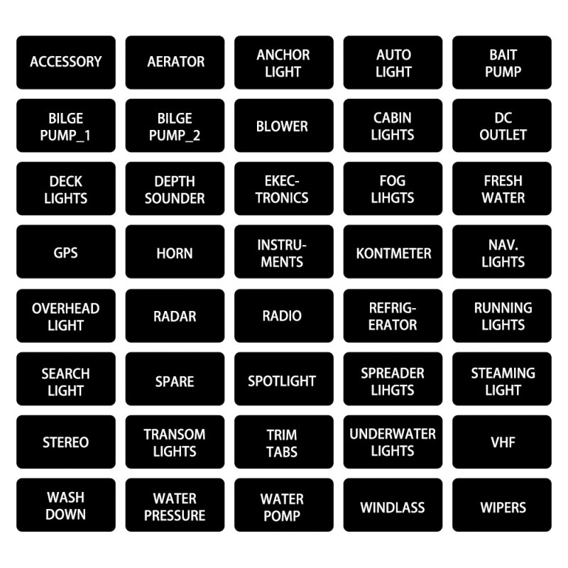 Stainless steel screws for corrosion protection, recessed mounting holes to prevent shorts, comes with labeling stickers, and a 1” fuse placement clearance for compatibility with E-T-A Thermal Circuit Breakers.