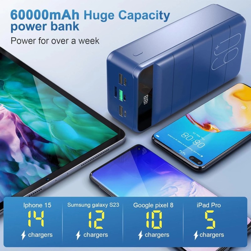 60000mAh Power Bank with Fast Charging - Ultimate Portable Charger for Travel