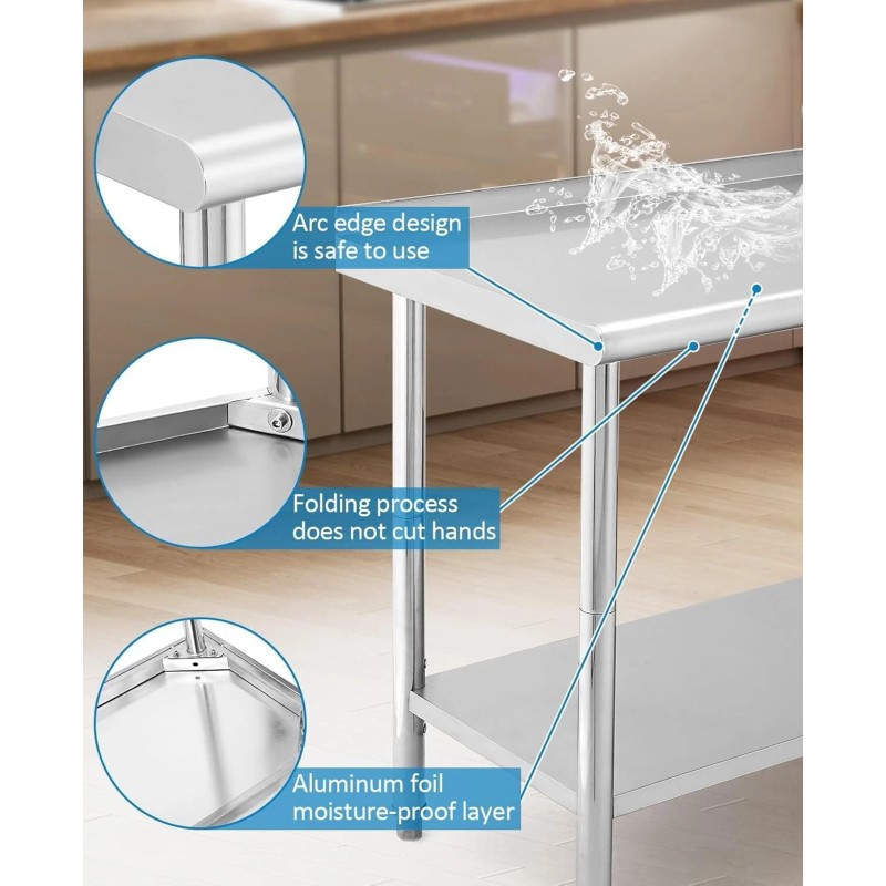 Unbranded 60x24x35" Stainless Steel Prep & Work Table with Adjustable Undersh...