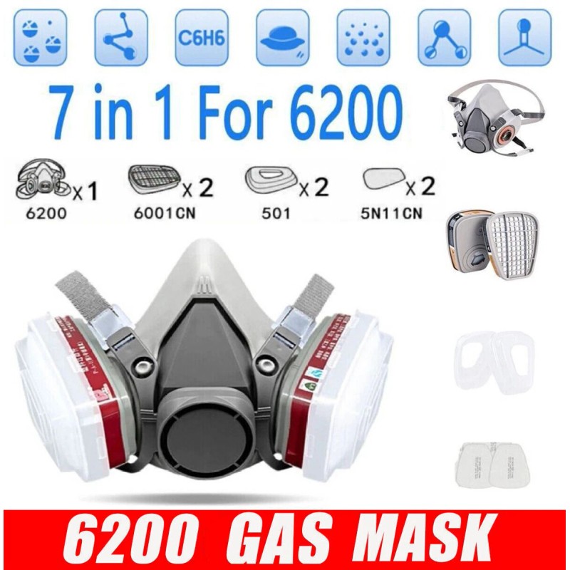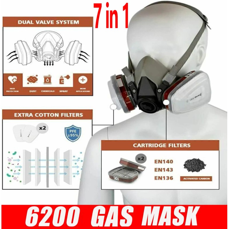 Unbranded 6200 Half Face Respirator Painting Spraying Mouth Gas Mask 7 in 1 Respirator Set