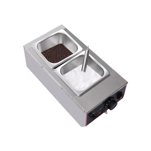 If you want to become a baking master, you cannot miss this product. The chocolate melting machine is made of high-quality stainless steel and has two pots. It has a total capacity of 6L/1.5gal and can achieve even and fast heating, which can save you much time and is suitable for commercial use. Meanwhile, the heating temperature is adjustable within the range of 30-85℃/86-185℉, making this product convenient for you to use. Come and buy it!