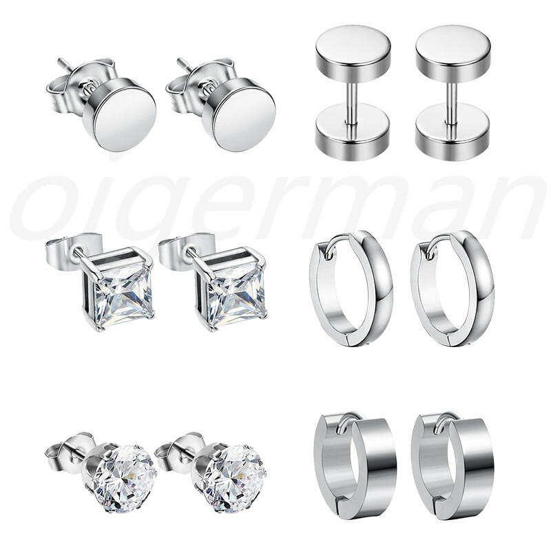 6Pairs Stainless Steel Silver CZ Huggie Hoop Earrings Ear Studs Piercing Women's