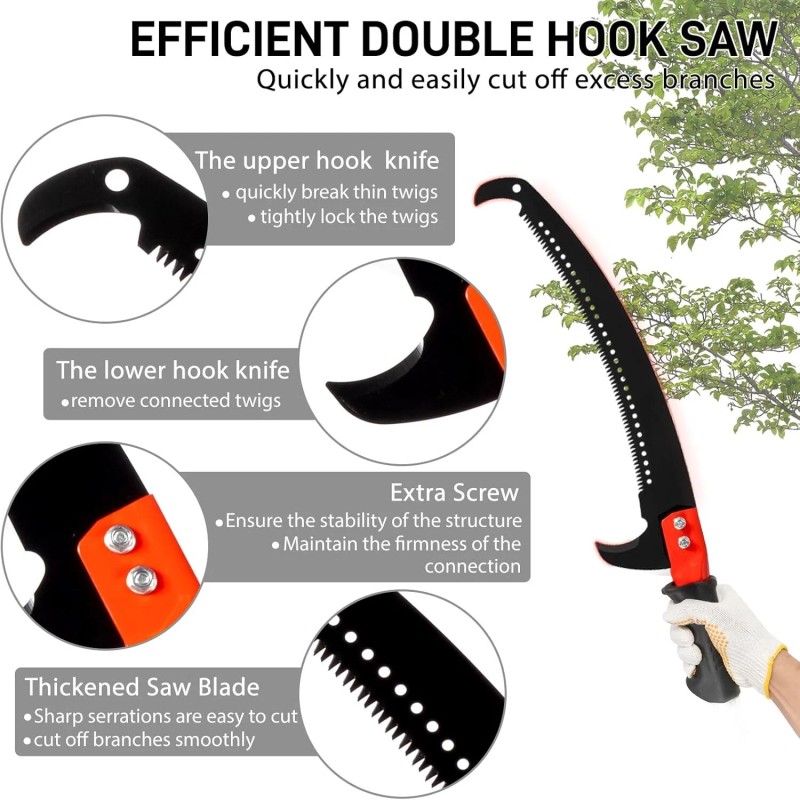 - 【Safe & Reliable】Reinforced screws maintain stability between the saw and pole, preventing loosening and potential injuries. After installation, branches that are difficult to reach can be trimmed without a ladder. You can easily prune high and hard to reach branches on even tall trees.