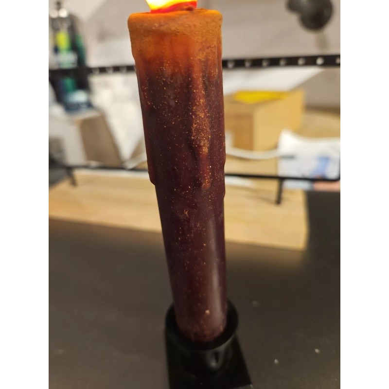 Add a touch of rustic charm to your home decor with this 7" battery-operated waxdipped burnt red taper candle. The candle features a flicker flame design that creates a warm and cozy atmosphere in any room. It is hand-dipped and made of high-quality plastic and wax materials, ensuring a long-lasting and enjoyable experience.