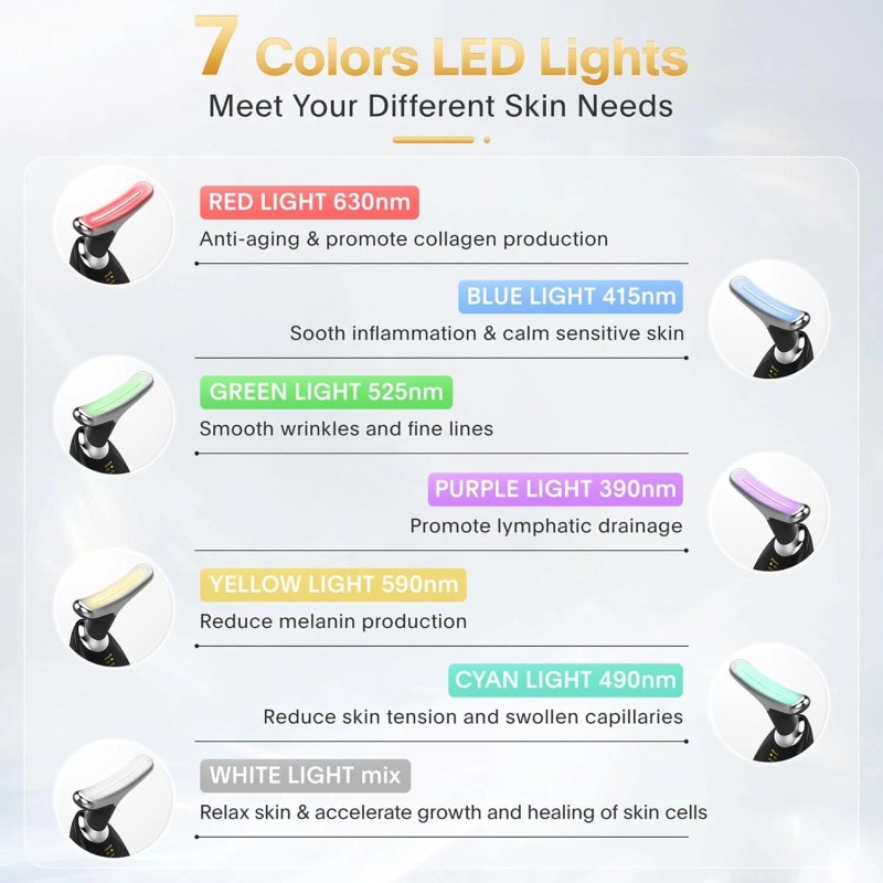 Features: All Natural Ingredients,Portable,Compact Design,7 LED Light Modes,Heating Function | Formulation: Device | Type: Face Neck Massager | Size: Regular |