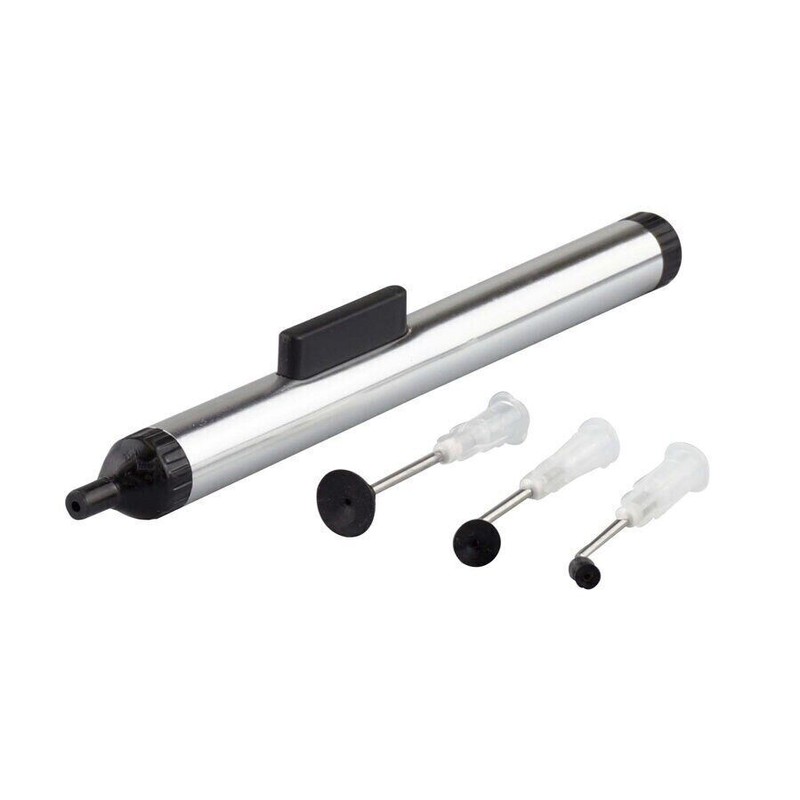 Durable, lightweight vacuum pen comes with the tools you need for soldering, jewelry-making, and other delicate projects. This set includes suction cups in various sizes and capacities so you can position IC SMD units, jewels, residue, dust, and other fine and fragile items with ease. We have also provided both straight and angled interchangeable tips for handling such components with even greater convenience.