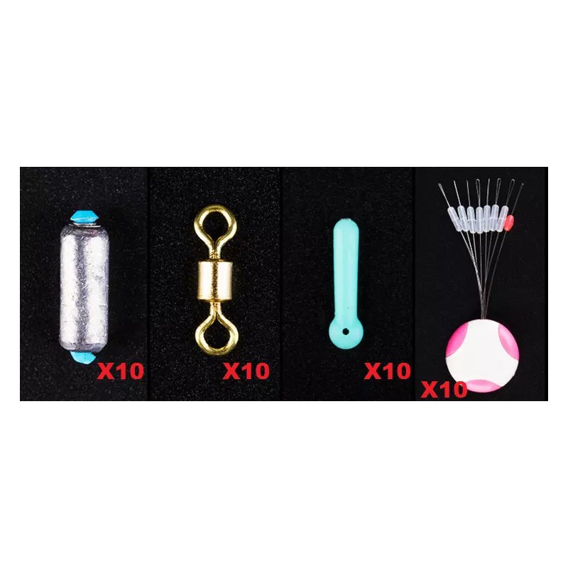 You will receive totall 10 Ring, each ring has 6 White Rubber Bobber + 1 Red Rubber Bobber, just like the picture shows + 1 FREE Box + Some accessories