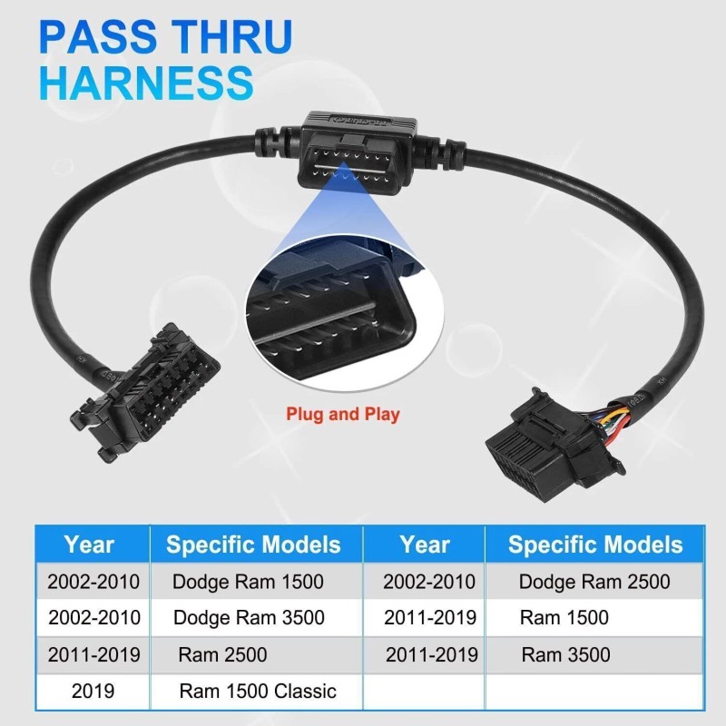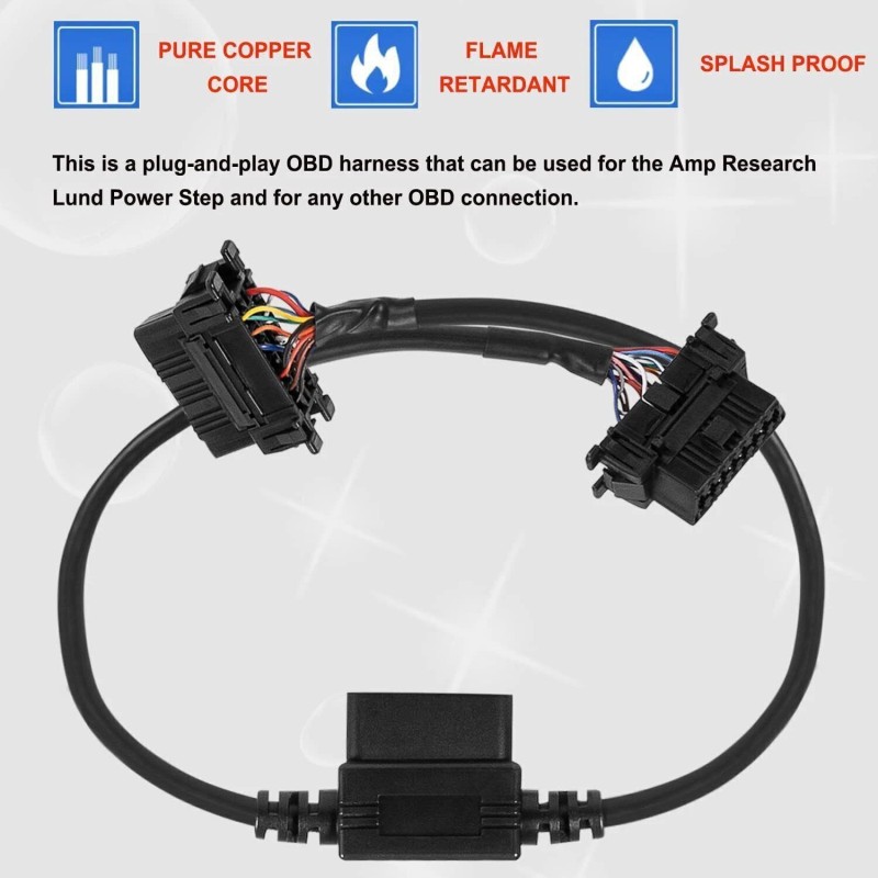 EXCELLENT FUNCTION: Designed to simplify installation of multiple accessories—running boards, tuners and more. Our Plug & Play OBD-II Pass-Through Harness provides you an additional OBD-II port in your vehicle, use it for double your accessory ability and function.