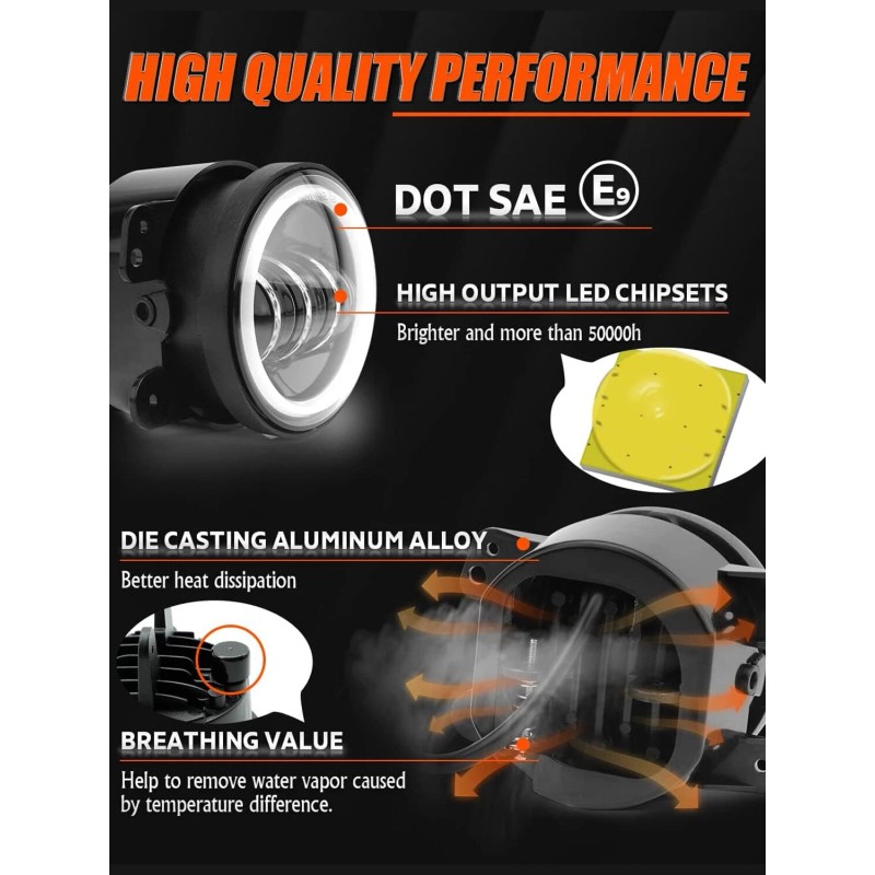 - Features: DOT-Certified, Halo Headlights, Projector Housing, Sealed Assembly