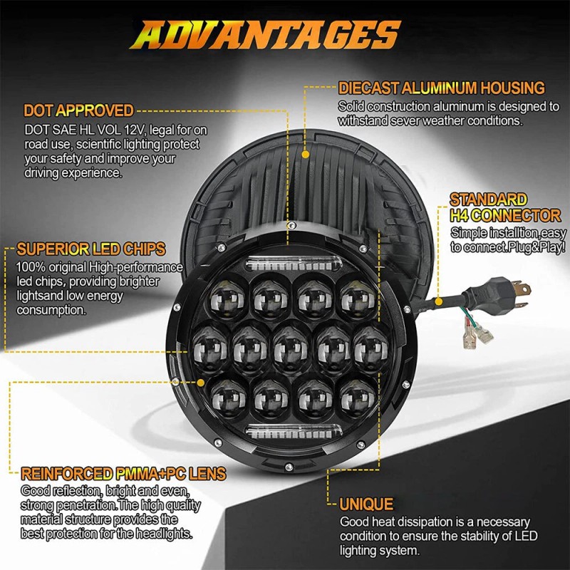 Pair 7 inch Round Led Headlights Black Headlamp DRL