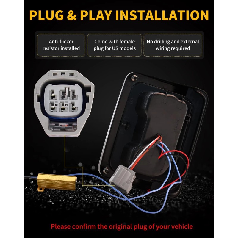 Taillight has a female plug for U.S. models. (International customers please verify if your Jeep requires a male or female plug)