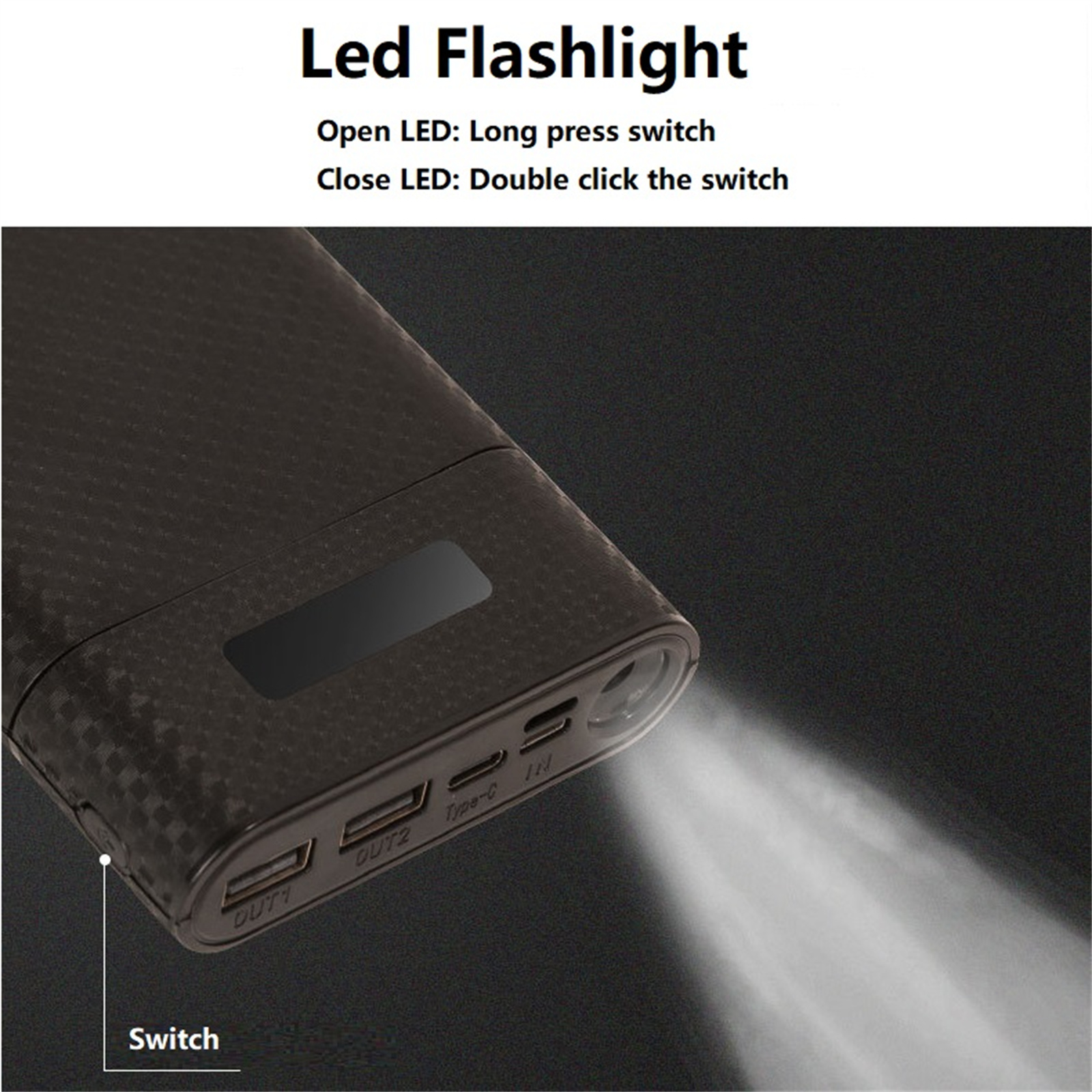 1. DIY mobile power box: Large capacity, 8 x 18650 batteries (batteries are not included). Dual USB mobile power supply, two devices can be charged at the same time. Three input ports: Micro, Type-C, for iPhone, compatible with three commonly used mobile phone/ tablet interfaces.