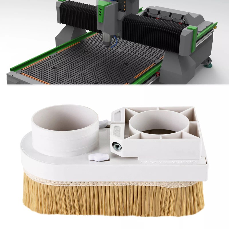 This CNC dust cover is made of a high-quality ABS base and dense nylon bristle, making it strong, durable, and good at removing wood chips and dust. The flat knobs on both sides allow you to easily detach and replace the bristle. It's your ideal choice!