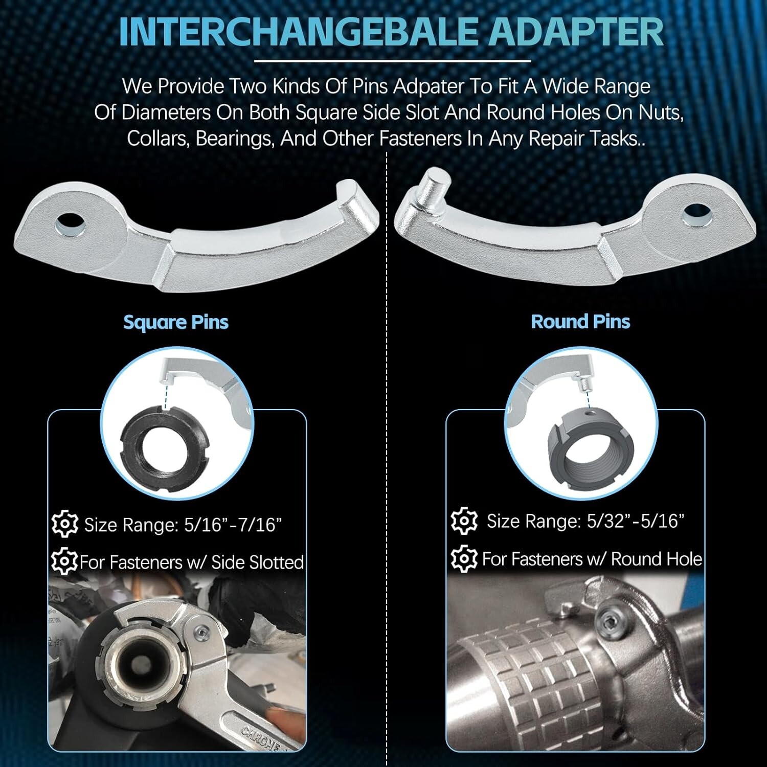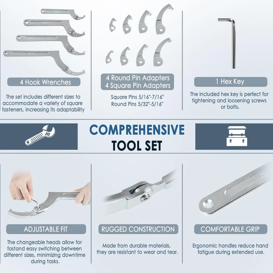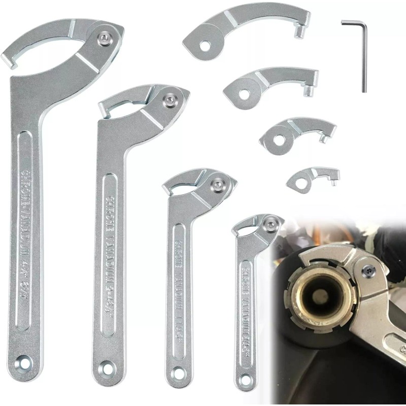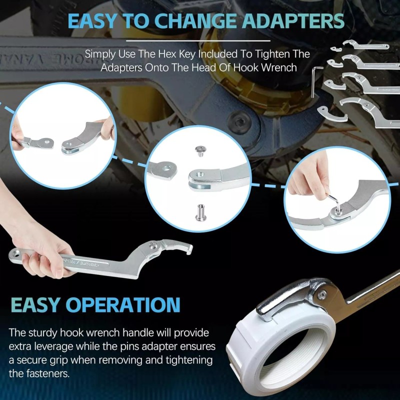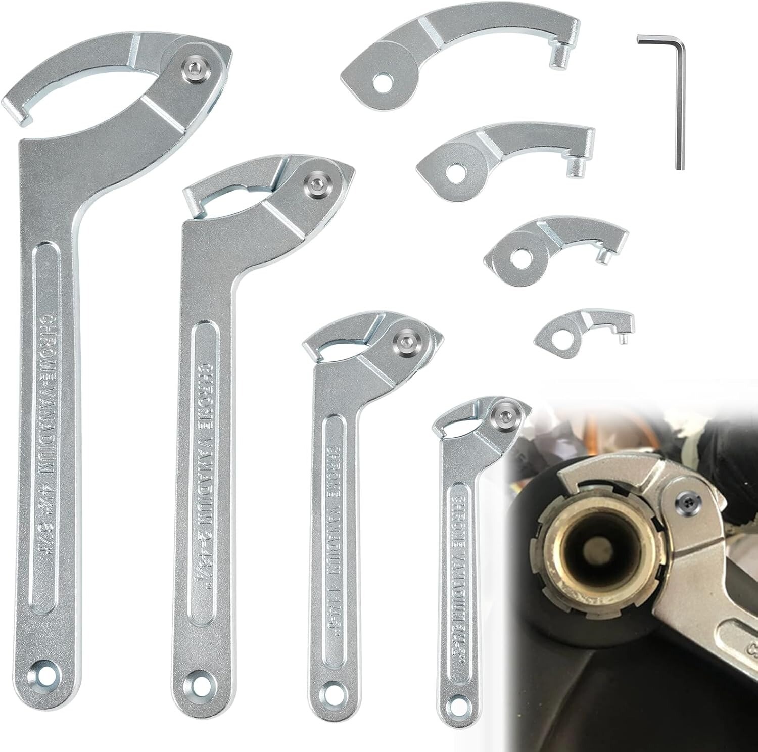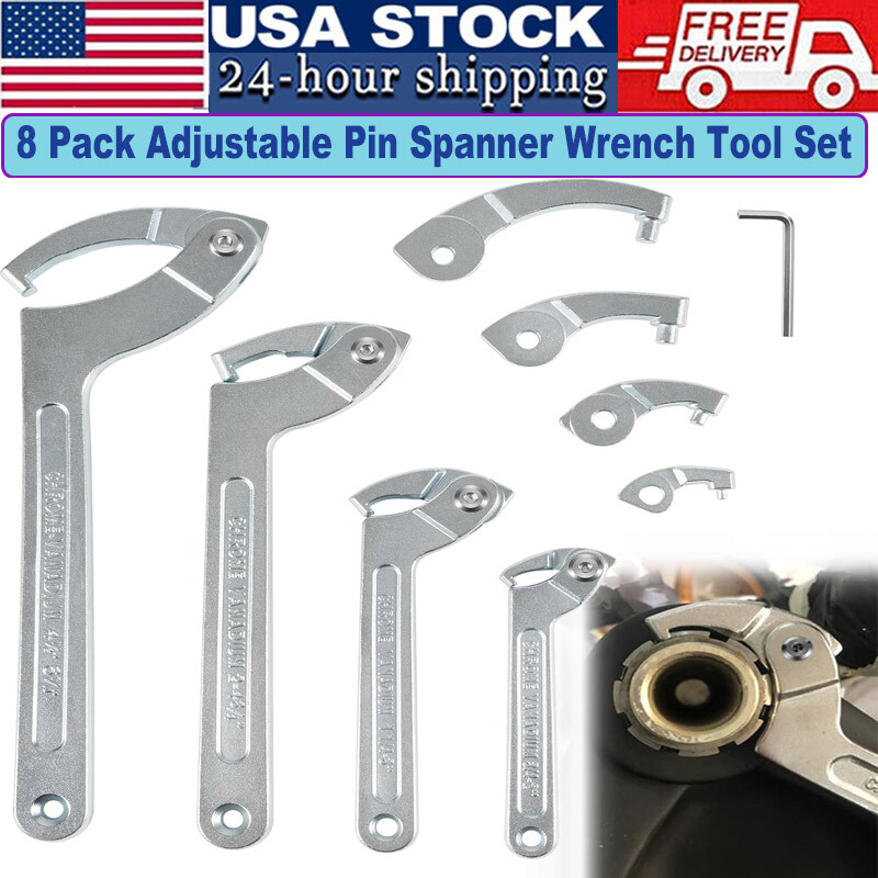 8 Pack Adjustable Pin Spanner Wrench Tool Set, Coilover Hook Wrenches with Changeable Heads for Suspension Collar, Nut Adjustment, 3/4" to 6-1/10", Adjustable C Spanner Hook Wrench Tool Set