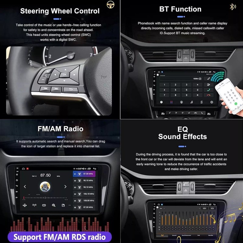 🚖[Android Car Radio with Touchscreen]9 inch screen HD 1080P Car Stereo, high-definition capacitive multi-touch screen, with faster run. Support WIFI DVR BT hands-free calling, FM radio, GPS navigation, music player, USB, steering wheel control, video player, etc, Support moving the screen manually and multi screen playback, split screen function.