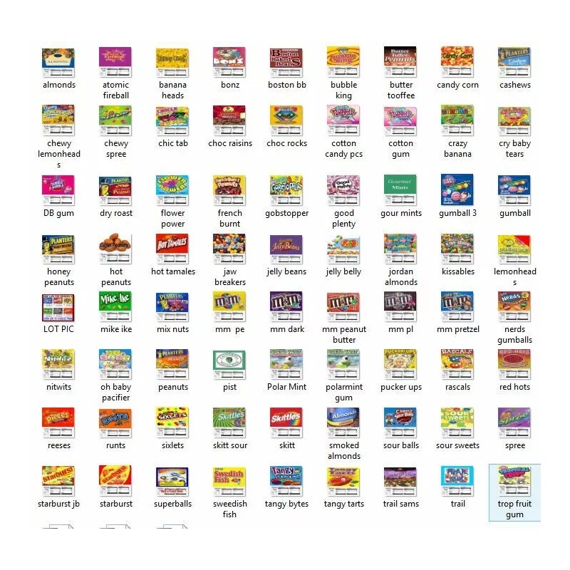 Unbranded 9 pack VENDING MACHINE CANDY STICKERS LABELS NUTRITION 2.5" QUICK & FREE Ship