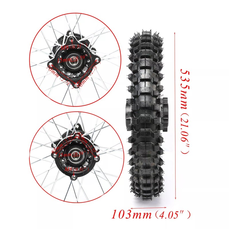 Rim Size: 1.85x14 14 inch rim+tube+tyre.