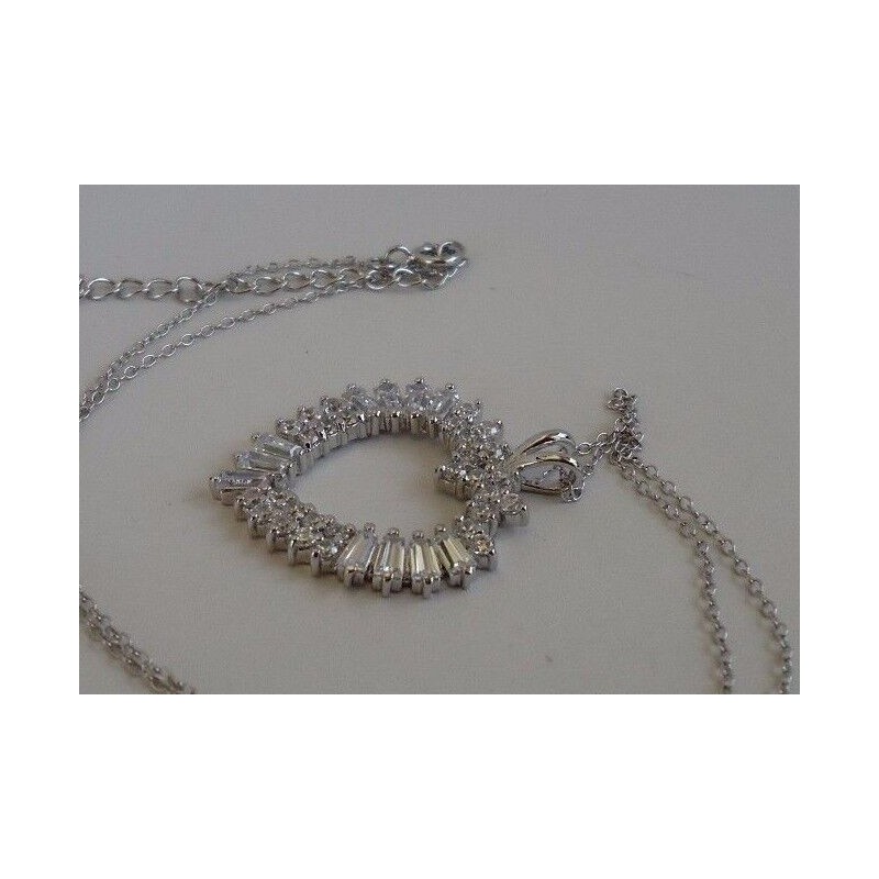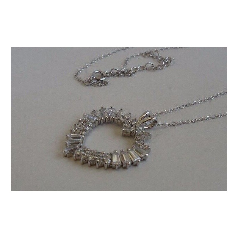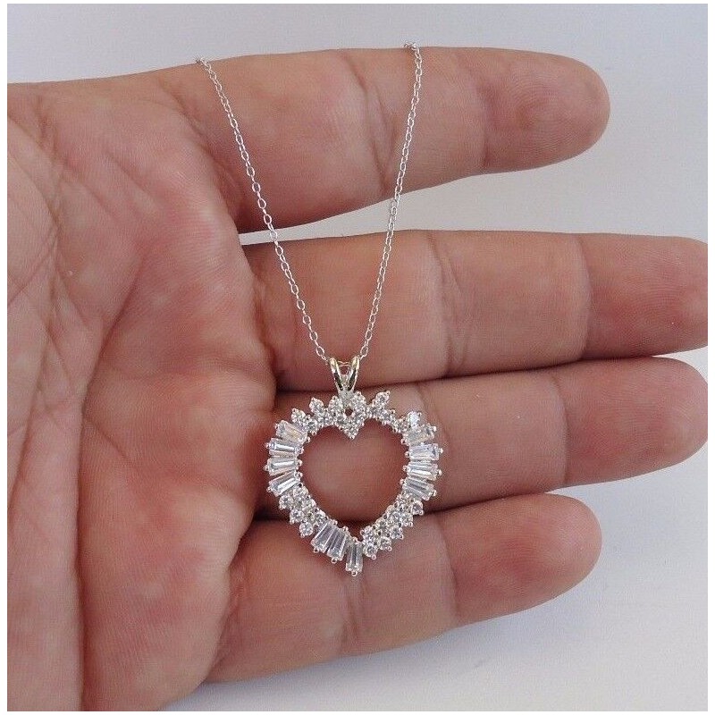 925 STERLING SILVER LADIES OPEN HEART NECKLACE PENDANT WITH 3.50 CARATS OF BAGUETTE MAN MADE DIAMONDS.....TOTAL WEIGHT 5.6 GRAMS.....PENDANT DIMENSION 32MM BY 26MM....NICKEL FREE RHODIUM PLATED FOR EXTRA SHINE AND IT WILL NOT CHANGE COLOR....CHAIN LENGTH 16'' PLUS 2'' EXTENSION .... ..VERY ELEGANT AND UNIQUE DESIGN THAT'S WELL LOVED BY EVERYONE..... QUALITY PIECE AT AMAZING SAVINGS.... RETAILS $278.00..BGP00234.... LOWEST PRICE GUARANTEED!!!!! GET IT TO BELIEVE IT!!!!  LOOKS 1000 TIMES BETTER IN REALITY THAN PICTURES!!!!