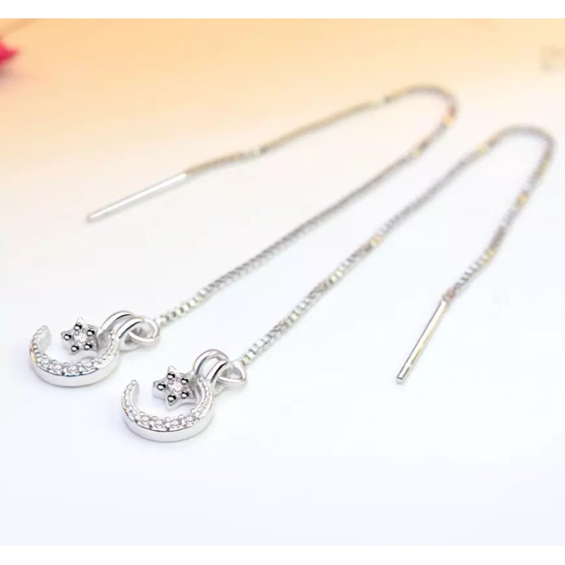 925 Sterling Silver Plated CZ Moon Star Threader Earrings/1Pair