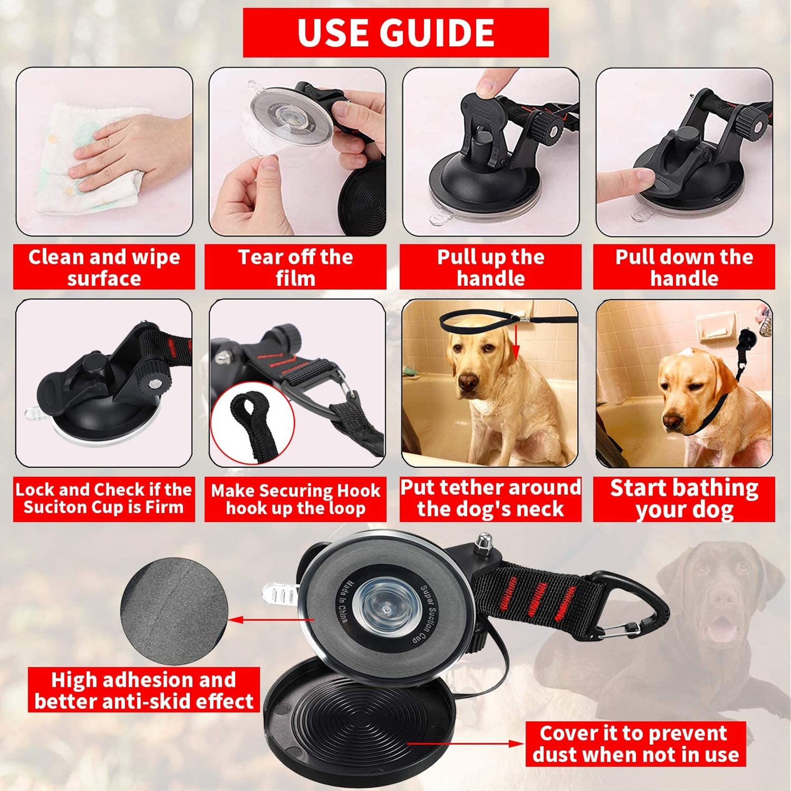 The dog bathing suction cup tether can be firmly attached to the wall or bath tub, not easy to fall off, suitable for attaching to smooth surfaces without bumps, such as tiles, glass, smooth metal surfaces and so on