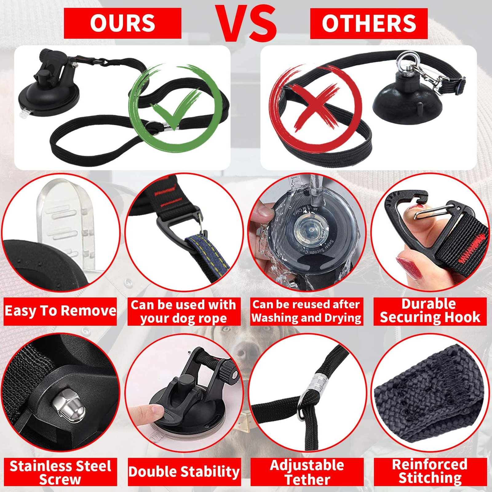 Made of rubber, the suction cup hook cleat is durable to use, providing you with the stainless steel screw to fixed the suction cup, not easy to break or rust even when it encounters water, and they are easy to assemble and disassemble; While the grooming restraint loops are made of nylon with stainless steel hook, very sturdy to use