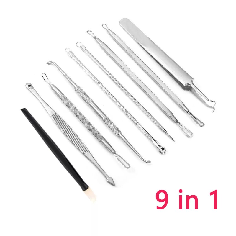 9 pcs Professional High Quality Pushers and Pimple Extractors for Removing Blackheads, Whiteheads,Pimples and Blemishes.