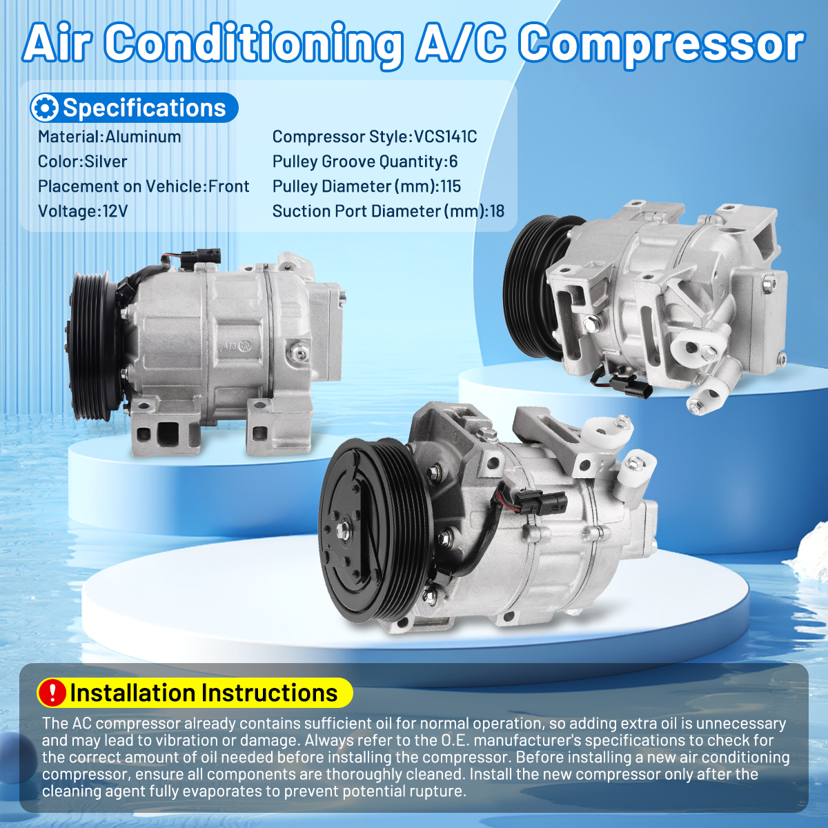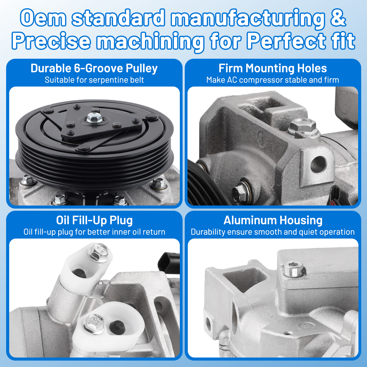 This  powerful auto AC compressor can provide intense pressure to achieve  strong cooling effect, and it also manifests excellent performance in  dissipating heat and ventilation.Longer  life of the alternator through the use of premium brushes and other  critical components that resist failure or poor performance.