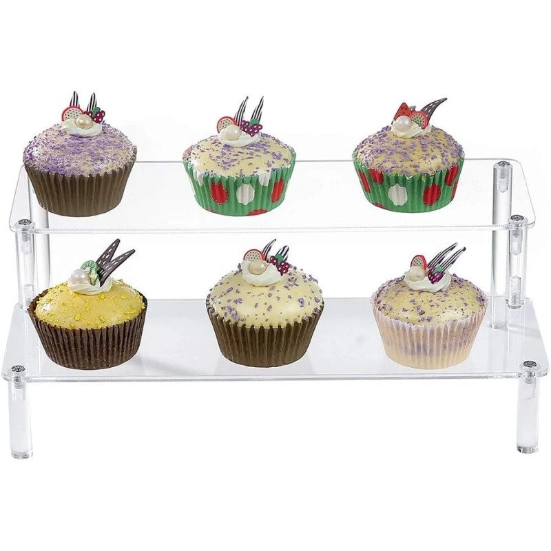 Unbranded Acrylic 2-Tier Display Shelf 12" x 6.9" for Figures, Desserts, Cosmetics Hold