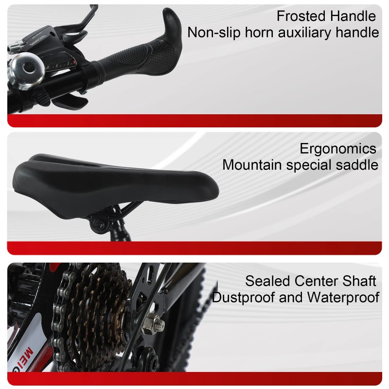 Stable Cycling: The U-shaped front fork and the rear shock absorber can absorb most of the vibration, achieving a more stable cycling experience, even on uneven mud, sand, and mountain roads. The elasticity of the tires also gives them a certain shock absorption effect.