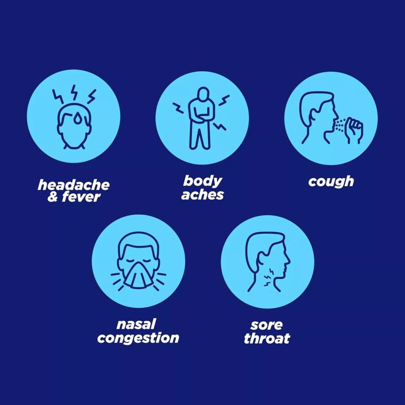 - Our Cold, Cough medicine formula provides unbeatably liquid fast relief of headache, sore throat, cough, nasal & sinus congestion, runny nose, sneezing, aches & pains and fever