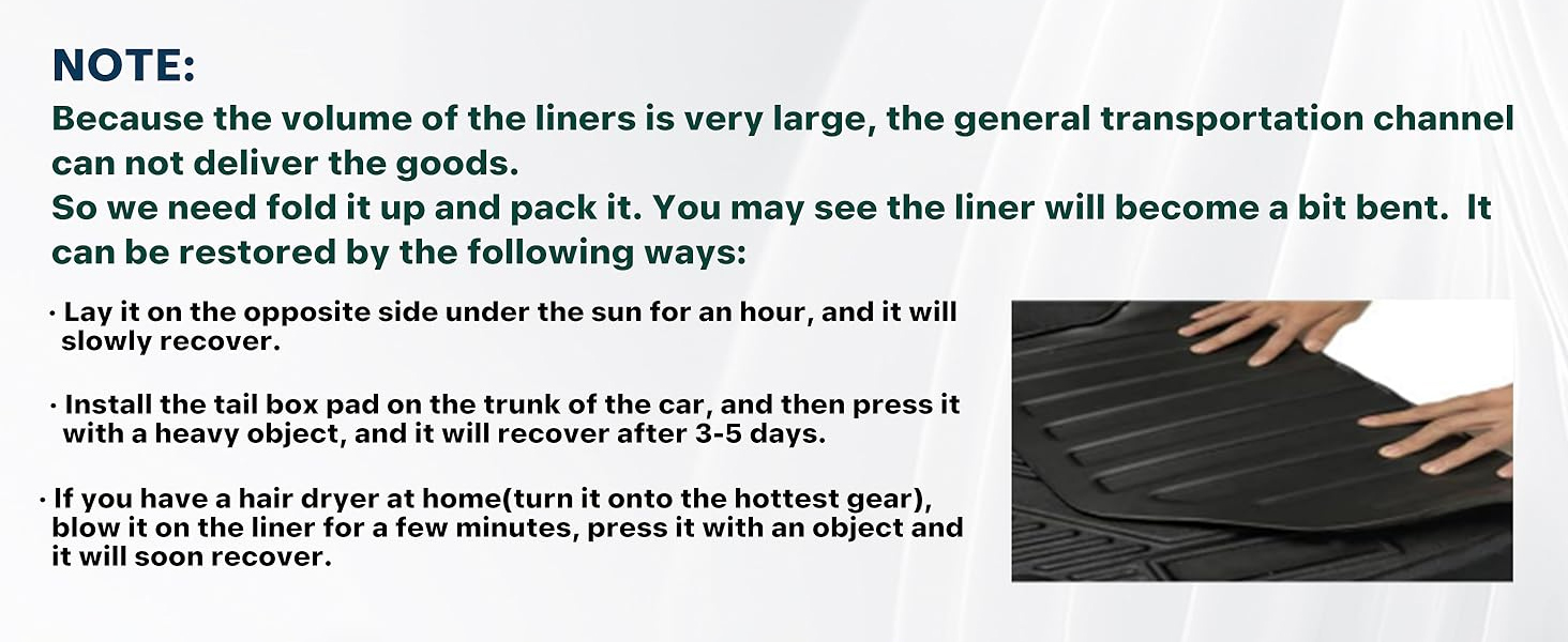 - 【Easy to Clean Up】There is water retaining design at the edge of the trunk cushion,which effectively prevents sewage from flowing into the car.No worrying about muddy shoes or food making your car dirty! Waterproof mats can be rinsed with water directly, which is easier to take care of.