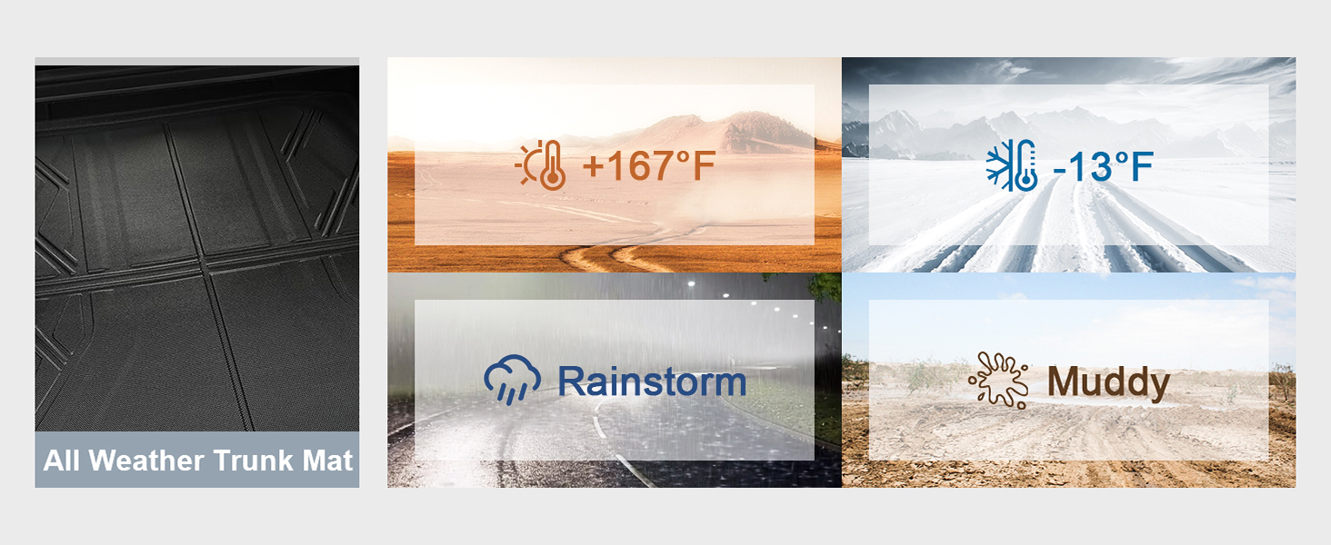 - 【Scratch Resistance】Strong flexibility of the trunk floor mat, easy to restore after folding,waterproof and resistant to dirt,Raised sides give extra protection, features grid pattern for a non-slip surface surrounded by a high ridge & edges. with the protection of the trunk cushion,you do not have to worry about the luggage will scratch or dirty car.