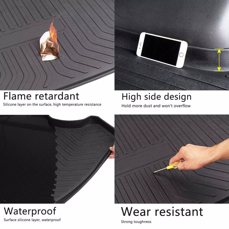 1.Custom fit precision of the mat protects your vehicles carpet floor by stopping spills and any other mess thanks to the liners raised and strengthened lip.2.Mess thanks to the liners raised and strengthened lip. Make the car keep far from the Mud,Dirt, Snow, Water and the rear trunk look good.Top of the line all-weather, stain-resistant, 100% waterproof odorless protection that gives your car,SUV, truck, or van interior a first class look while protecting the resale value.