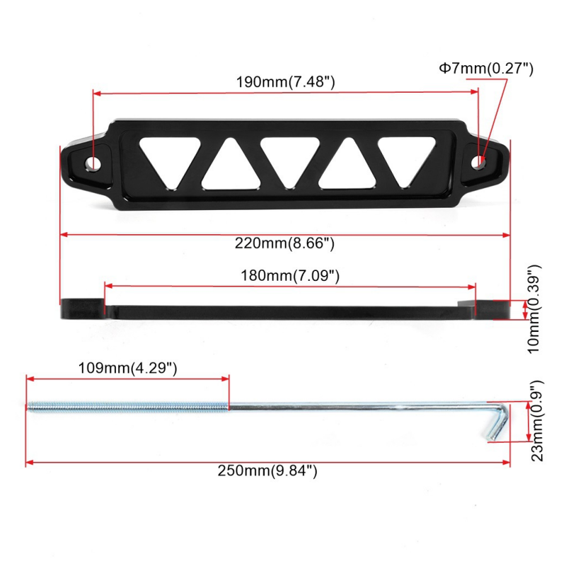 - Tie down Bracket Overall Length: 8.66" (220mm)