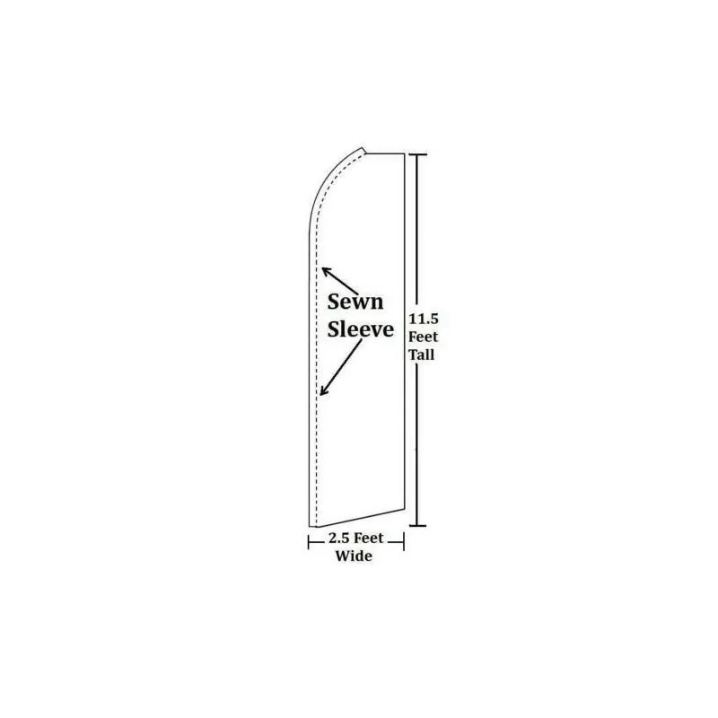 This 11.5ft x 2.5ft Super Flag is made of a 140kg super-knitted polyester built to withstand high winds over time. Its curved sleeve and free-flying edge allows the flag to grab attention without wrapping around the pole, and assembly is easy. The reinforced sleeve slides over the Swooper Pole.