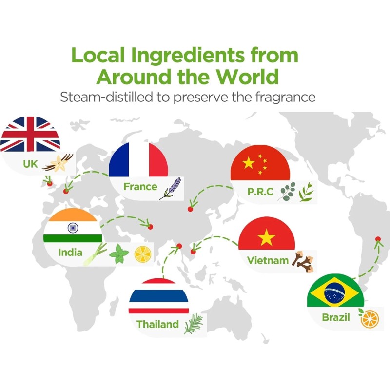 - Scent: Assorted/Mixed, Peppermint, Orange, Lavender, Tea Tree, Rosemary, Eucalyptus, Lemongrass, Lemon, Clove, Vanilla