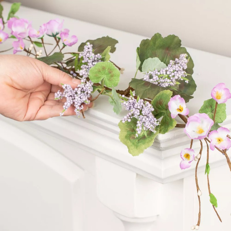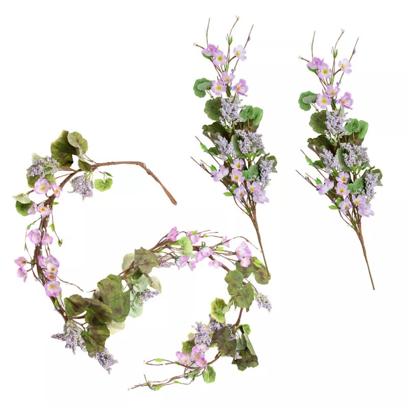 Unbranded Artificial Purple Geranium and Berry 30" Sprays and 5' Garland Set