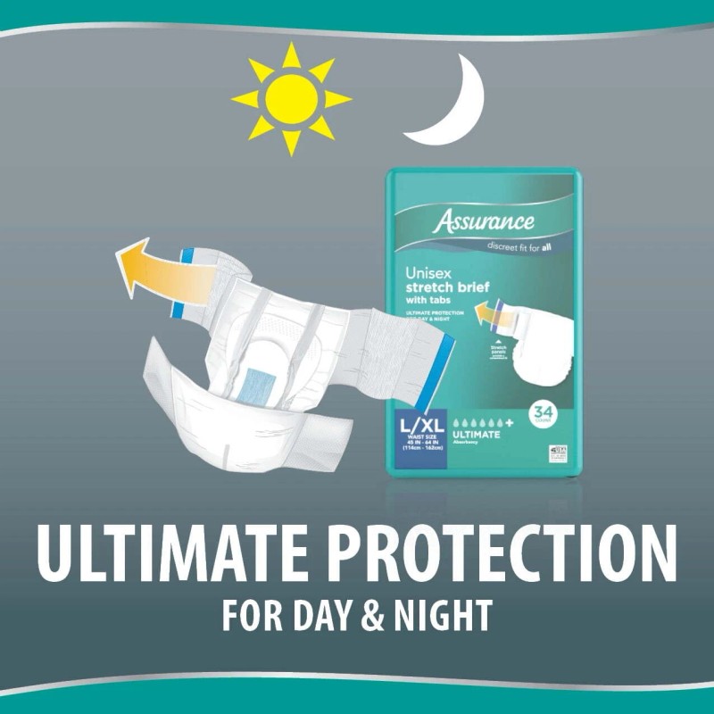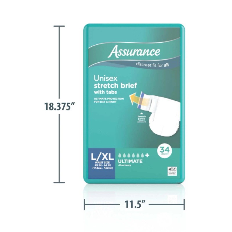 Assurance L/XL Unisex Stretch Briefs With Tabs 34 Ct