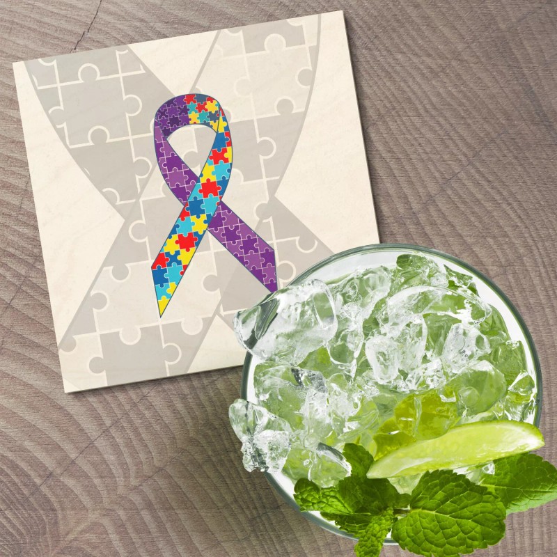 Unbranded Autism And Epilepsy Day Puzzle Ribbon 4'' X 4'' Square Wooden Coaster