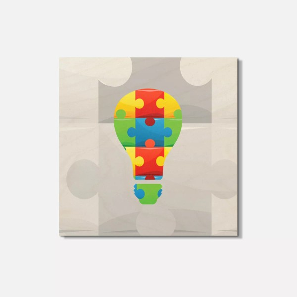 Unbranded Autism Light Bulb Puzzle 4'' X 4'' Square Wooden Coaster