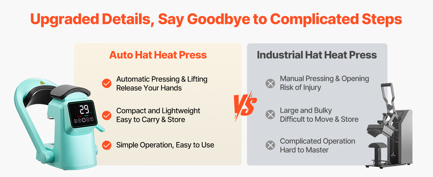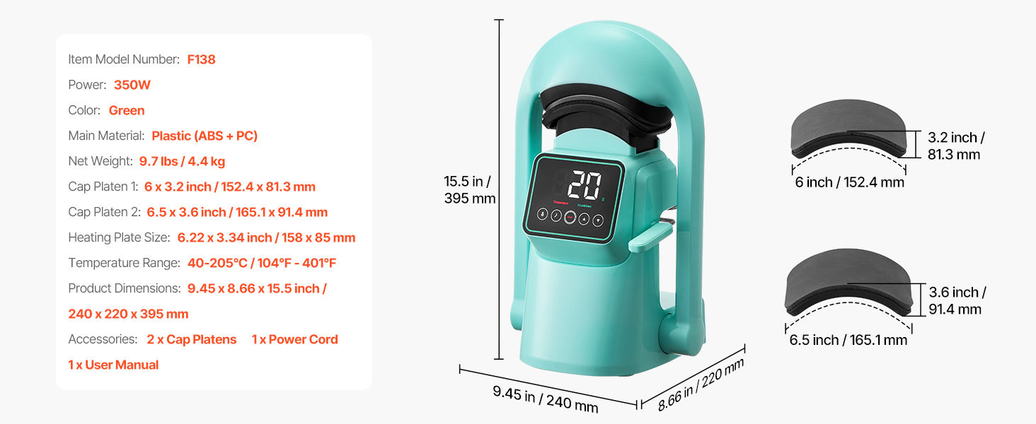 - Compact & Portable Design: Measuring 9.45 x 8.66 x 15.5 in, this space-saving cap hat heat press is easy to carry and store. Ideal for home crafting or small business use—take your heat press creativity anywhere