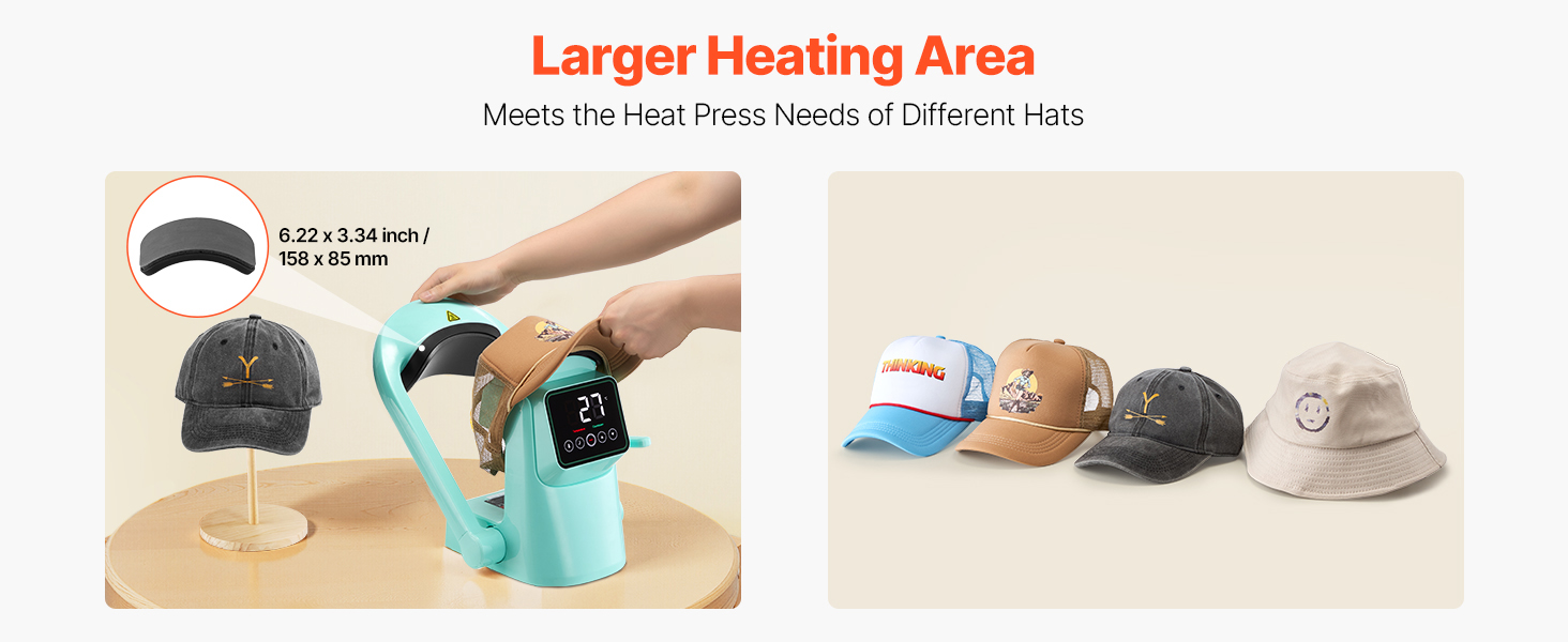 - Fits Various Hat Types: The automatic hat press includes two interchangeable platens (6 x 3.2 in & 6.5 x 3.6 in) to fit baseball caps, bucket hats, etc. Ideal for custom designs across multiple hat styles and sizes with a snug, professional finish