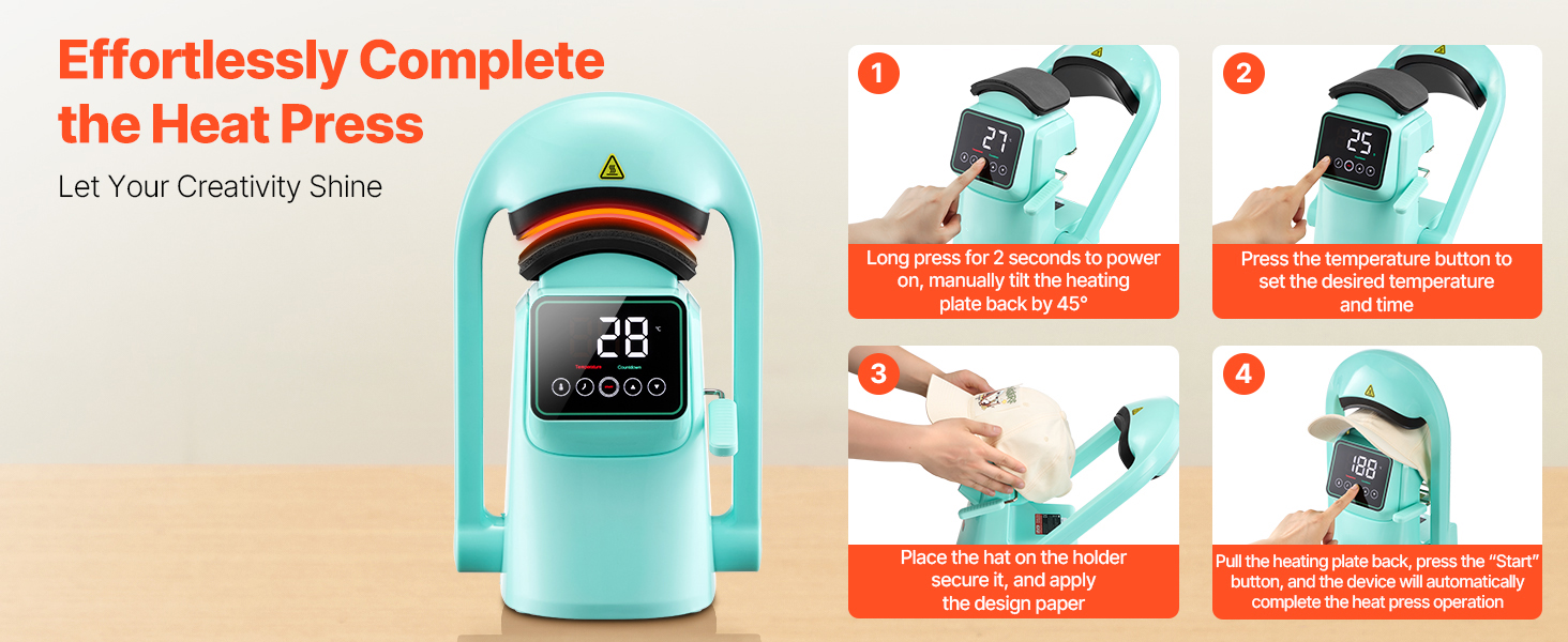- Automatic Press: Our auto hat heat press features a one-touch auto press design—no manual pressure needed! It delivers up to 110 lbs of force, making hat pressing faster and easier while freeing your hands for efficient DIY creation