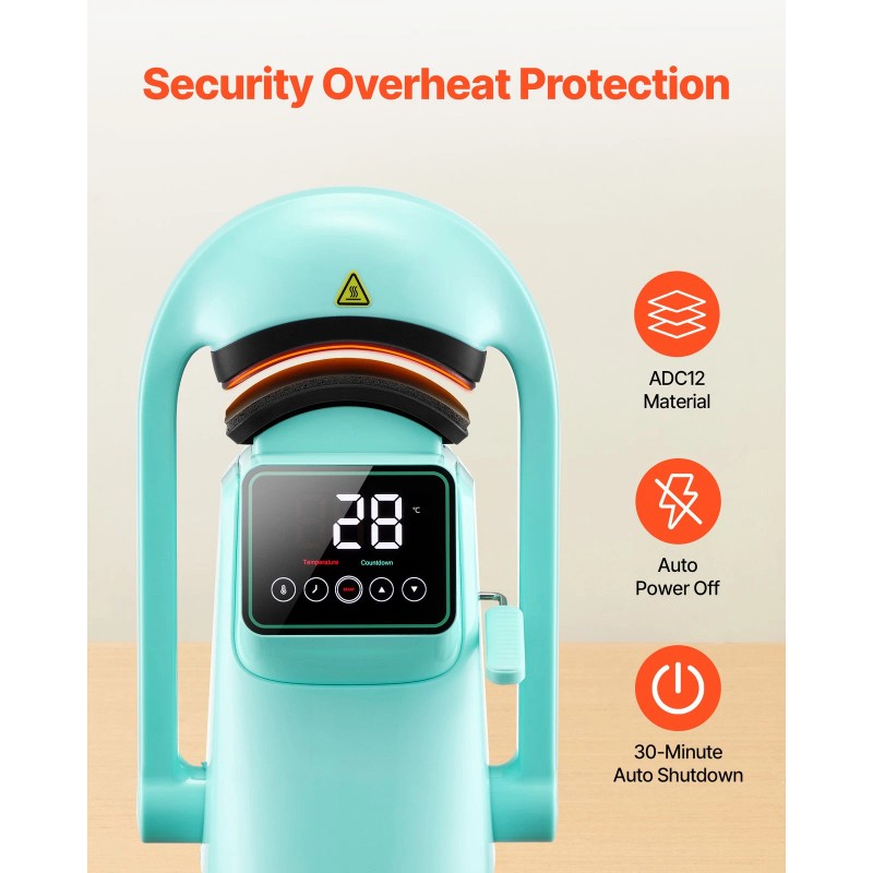 - Built for Security & Durability: The hat heat press machine is made from premium ADC12 alloy for fast, even heating. Auto shut-off avoids overheating, and 30-min inactivity power-down adds extra security and energy savings during use