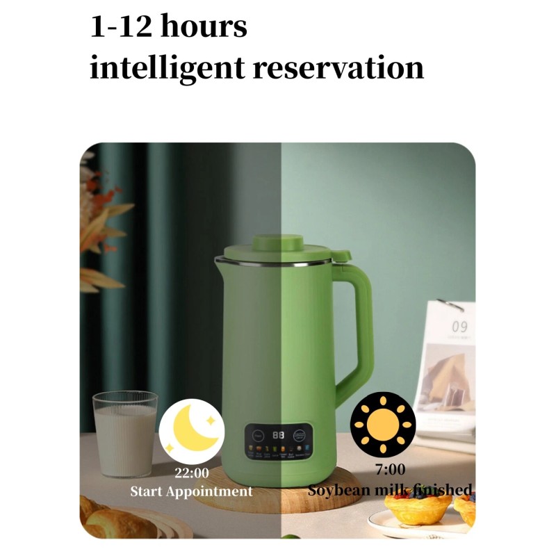 Soymilk maker is an advanced kitchen appliance specially designed for making soy milk and various food products. This nut milk maker machine adopts advanced wall-breaking technology and a 10-blade stainless steel blade, which is able to rotate the blade at high speed to break the ingredients thoroughly and release more nutrients. 1-12 hours intelligent reservation function makes your use smarter and more convenient, so it is worth your choice.