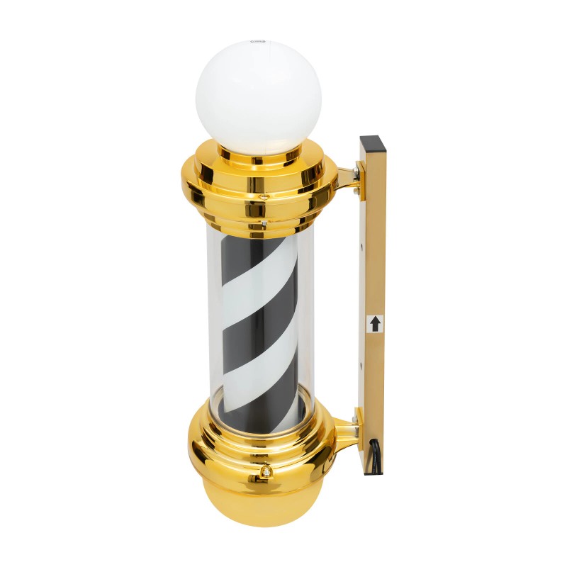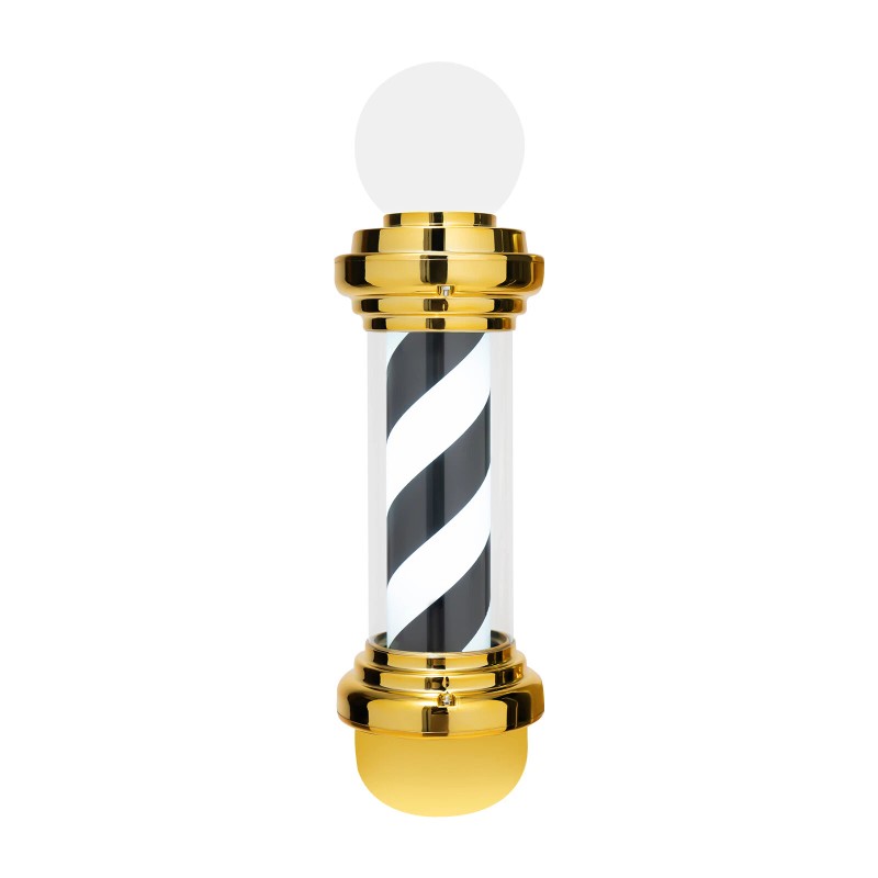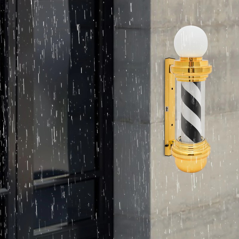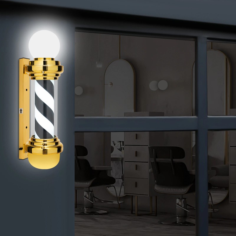 Barber Pole Light, Black, White, Gold Rotating Hair Salon Open Sign, IP54 Waterproof, Save Energy, Wall Mount.