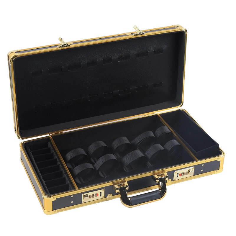 Top Grade Aluminum Finish and Construction, Reinforced Steel Corners for Extra Durability, Beautiful Smooth Black Finish, Classic Golden Trim.