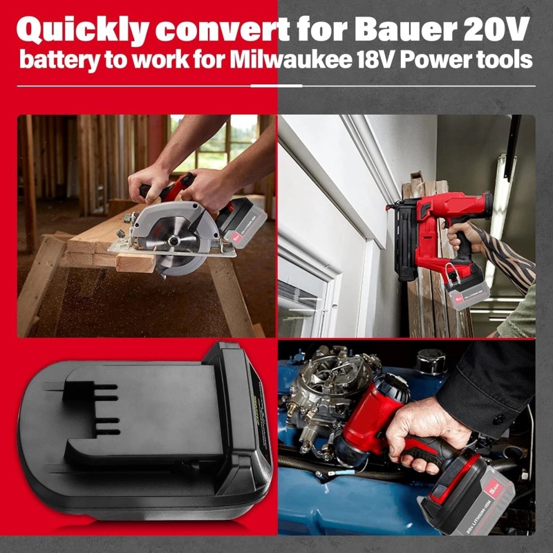 - 👉【Well Compatible】Fits well for Bauer 20V batteries, Use on for Milwaukee M18 Cordless Tools, which means you can use your for Bauer 20V batteries on for Milwaukee M18 power tools.