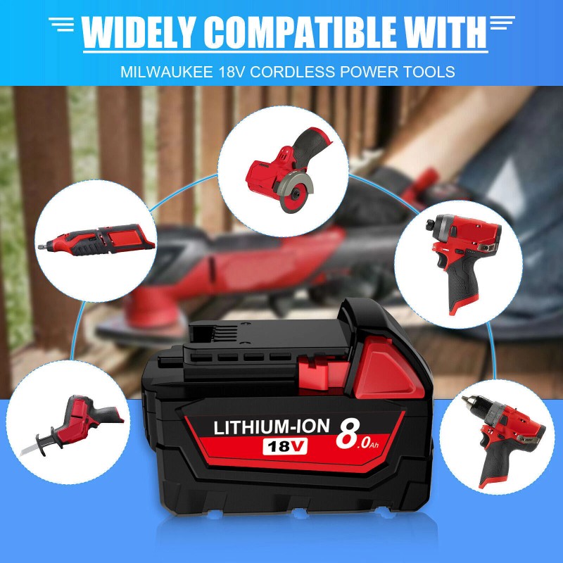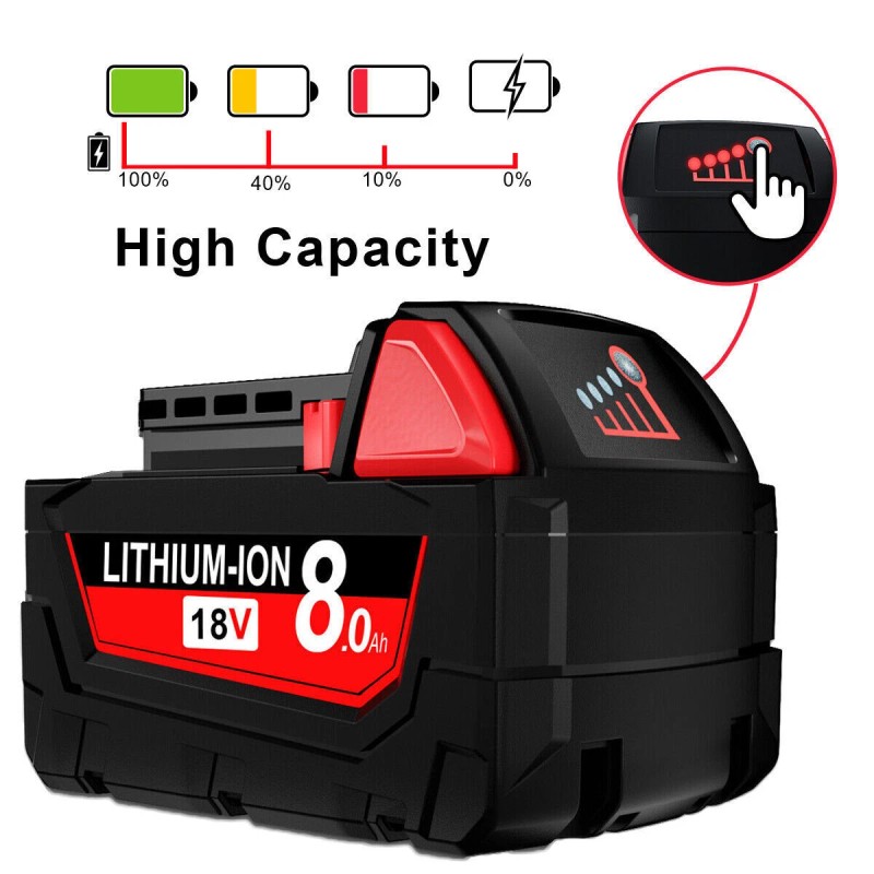 1X 18V 8.0Ah Battery for Milwaukee M18 48-11-1890