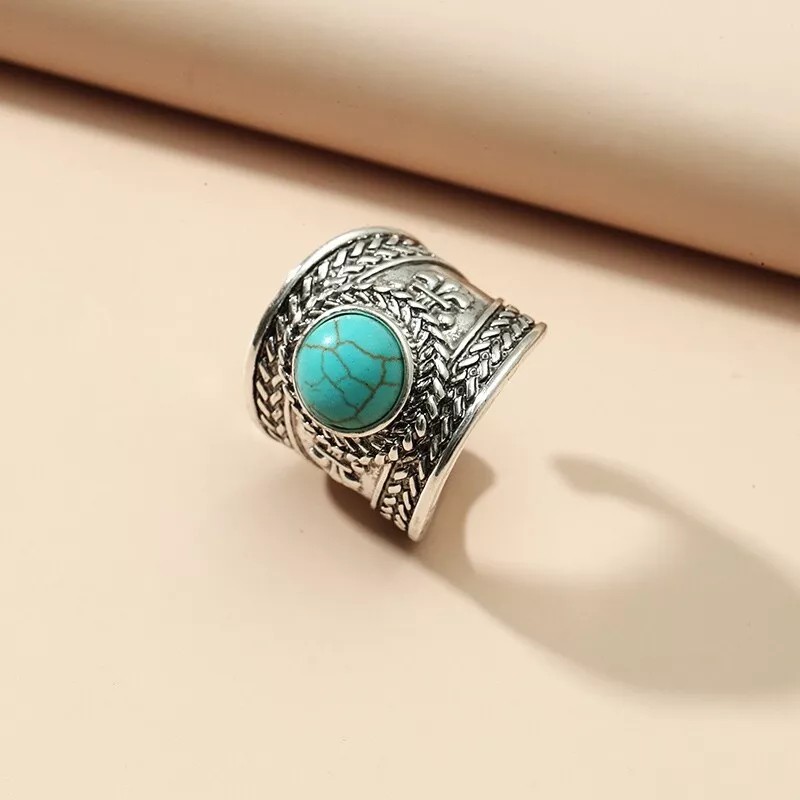 Unbranded Beautiful Retro Turquoise Wide Band Ring-adjustabl